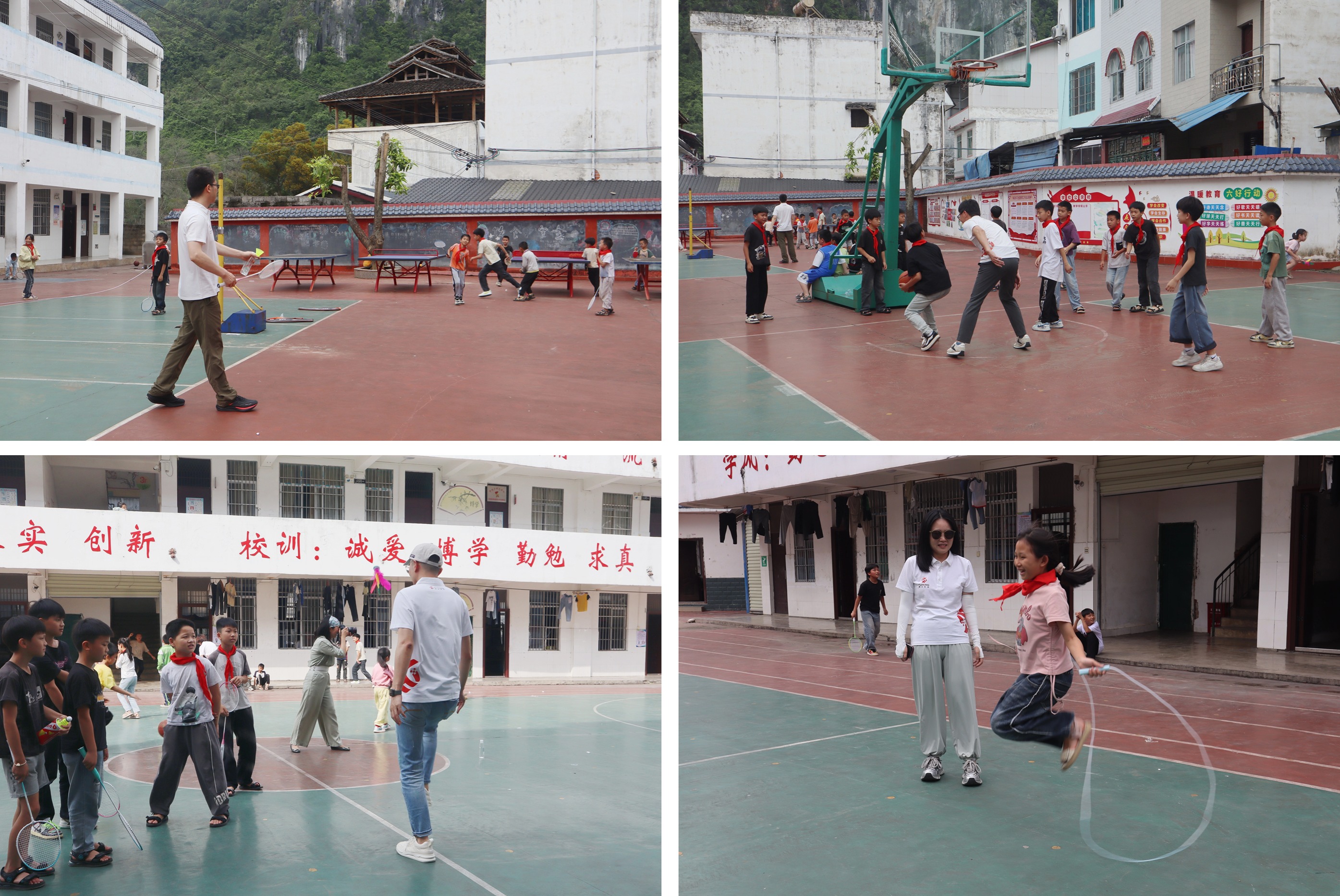 舞臺(tái)上,孩子們載歌載舞,用最純真的方式歡迎遠(yuǎn)道而來的我們;操場(chǎng)上,團(tuán)隊(duì)成員與孩子們一起打羽毛球、打籃球、踢毽子、跳繩等,歡笑聲在山間回蕩。一次次擊掌,一聲聲歡呼,是彼此心與心之間最自然的連結(jié)。