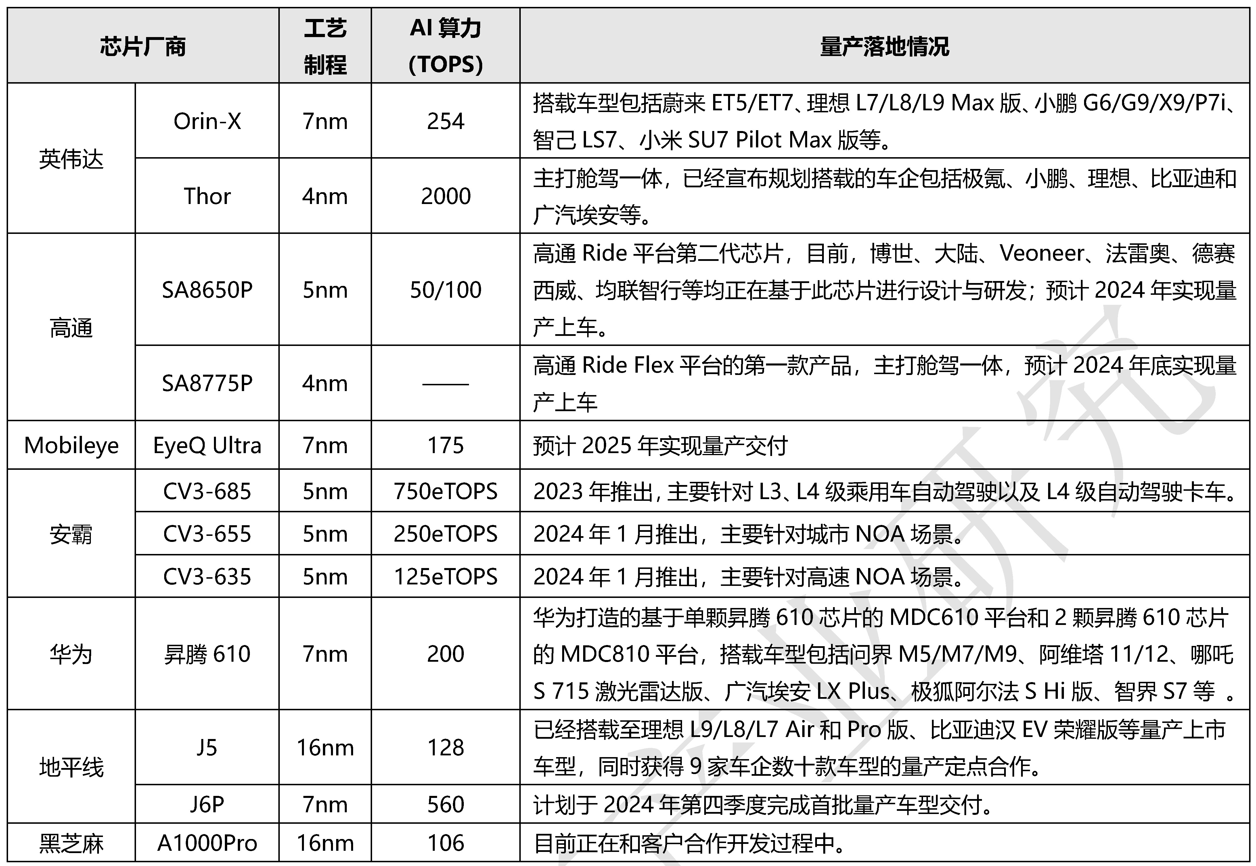 1、智能駕駛SoC芯片競爭格局