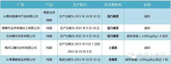 哪6個批次雞肉產(chǎn)品抗生素殘留超標(biāo)?