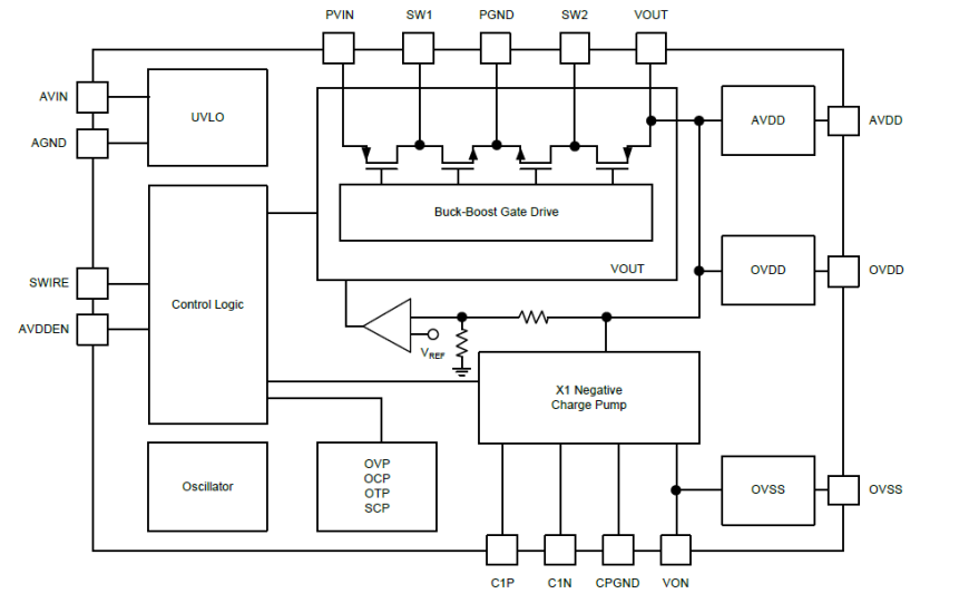 • OVSS:-2.8V~-3.5V(默認(rèn)輸出電壓:-3.3V±1%,0.1V步進(jìn))